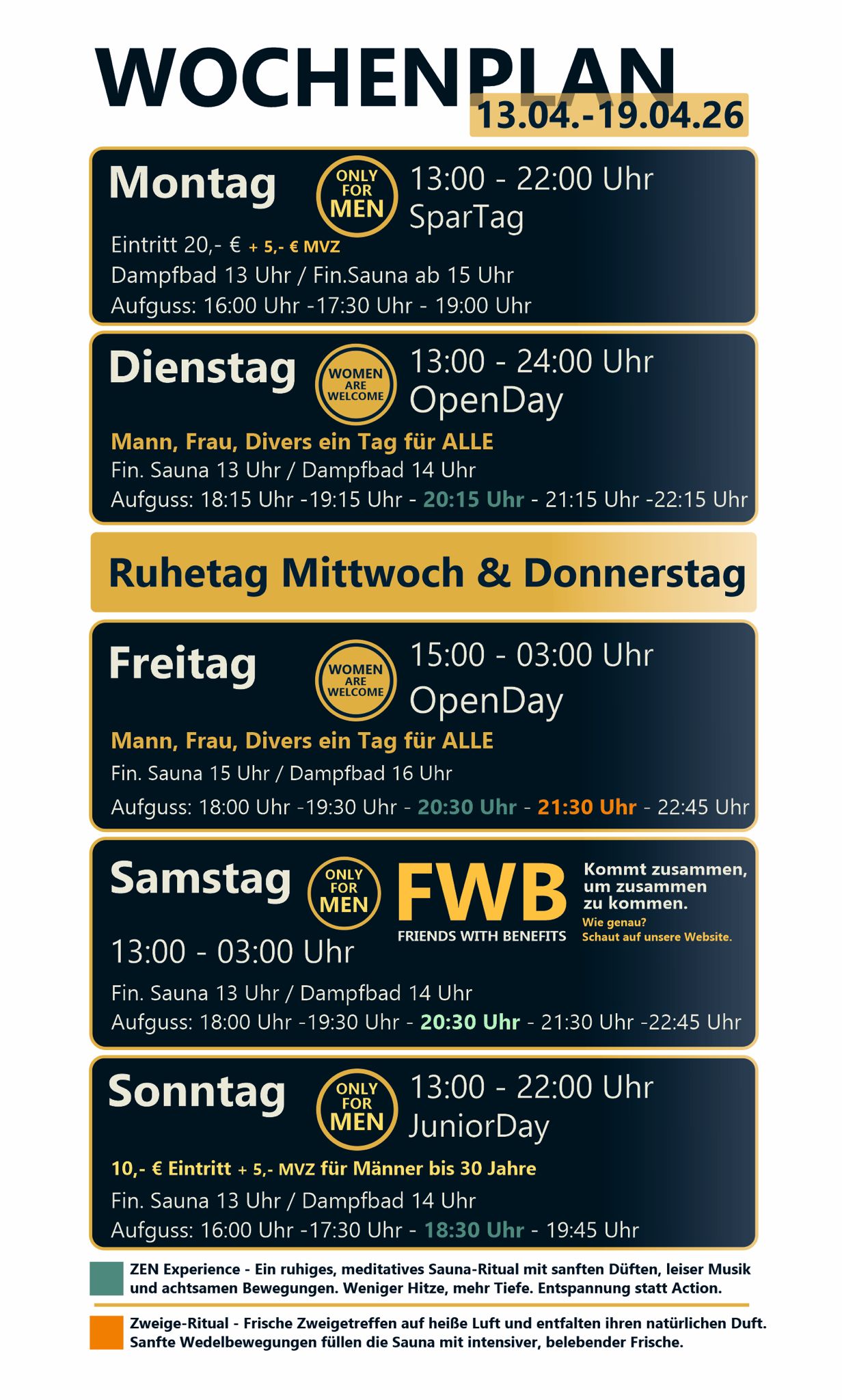 Alle Männer ab 18 Jahren sind herzlich willkommen – unabhängig von Alter, Herkunft oder sexueller Orientierung. Die Sauna ist ein queerfreundlicher Ort, an dem Respekt und Offenheit zählen. An den OpenDays sind auch Frauen bei uns wilkommen.