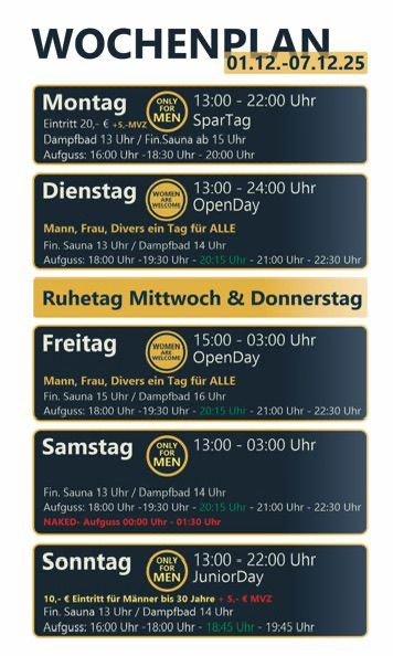 jeden Dienstag und Freitag für ALLE geöffnet, egal ob Mann, Frau, homo, hetero, bi, etc.